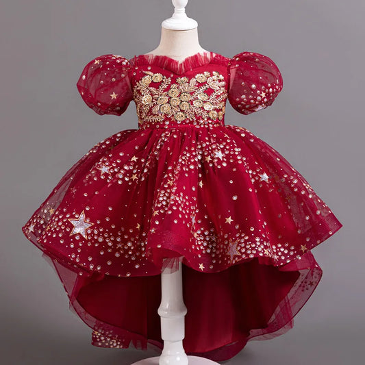 Vestido de lentejuelas para niñas, de manga corta, con encaje, para bodas, de verano, para damas de honor de 2 a 12 años.