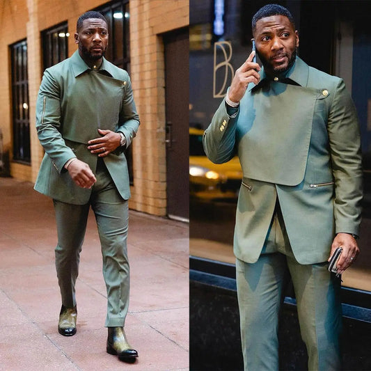 Trajes de boda modernos de moda para hombre, esmoquin de diseñador con solapa y cremallera, para novio, fiesta de negocios, 2 piezas, blazer, pantalones, traje personalizado