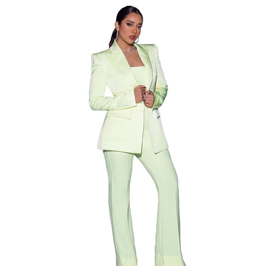 Blazer verde menta de verano para mujer, traje para madre de la novia, esmoquin de manga larga, abrigo de trabajo, pantalones, oficina, 2 piezas