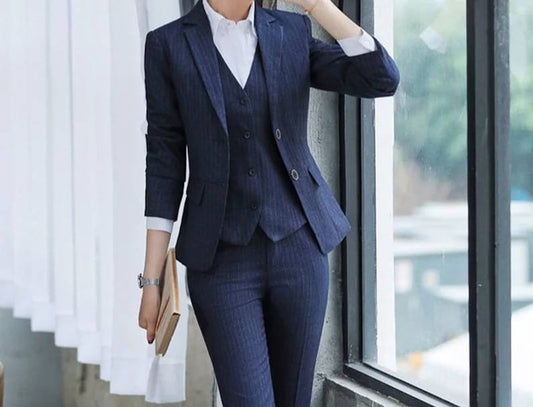 Traje azul marino para mujer, traje de tres piezas, conjunto de traje de boda, trajes de pantalón elegantes para mujer, ropa formal para mujer, traje,