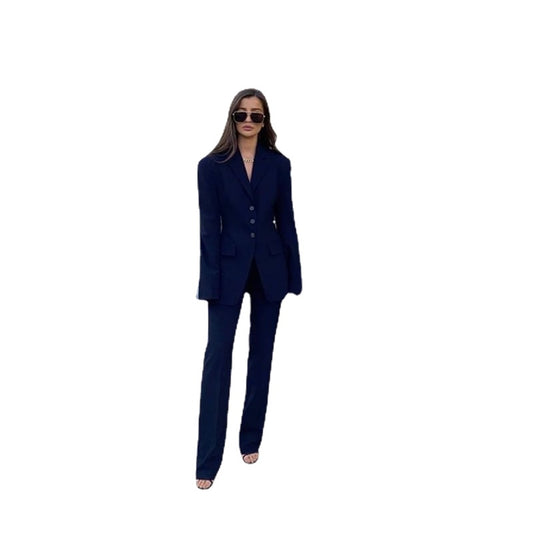 Conjunto de traje azul marino para mujer, chaqueta de manga larga y pantalón, chaqueta a medida, vestido informal para fiesta de graduación