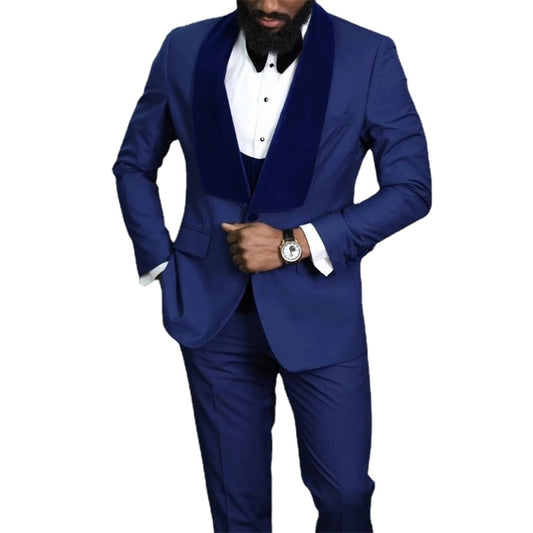 Trajes de negocios azul marino para hombre, hechos a medida, 3 piezas, chaqueta de terciopelo con solapa, chaleco y pantalones, blazer a medida, esmoquin de boda, trajes para hombre