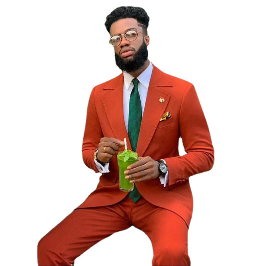 Nuevos conjuntos de traje naranja a medida para hombre, solapa con muesca para esmoquin de boda, 2 piezas, para novio, blazer, pantalones, chaqueta de graduación y pantalones.
