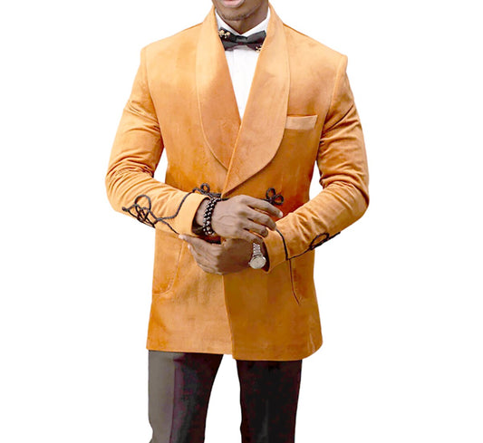 Luce con estilo con nuestro traje de terciopelo naranja para hombre, confeccionado por expertos en...