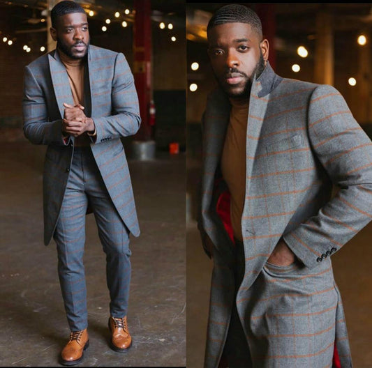 Trajes de hombre de talla grande, traje de dos piezas con solapa de pico y espiga, esmoquin de novio a medida, vestido de boda, graduación, chaqueta larga y pantalón