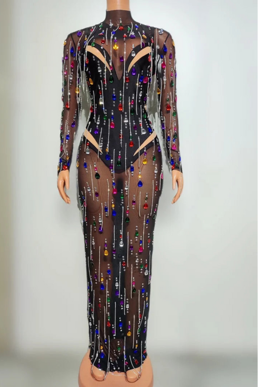 Sparkle in style with this sexy long sleeve bodycon jumpsuit, beautifully embellished with shimmering rhinestones....