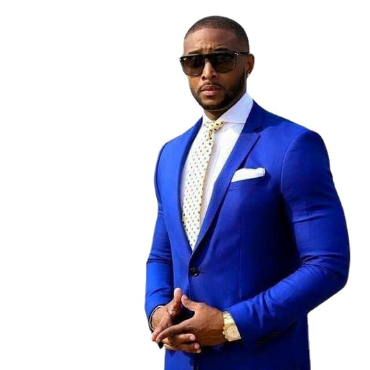 Esmoquin azul rey para novio, 2 piezas, corte entallado, para boda, graduación, fiesta, blazer, informal, a medida, chaqueta y pantalones.