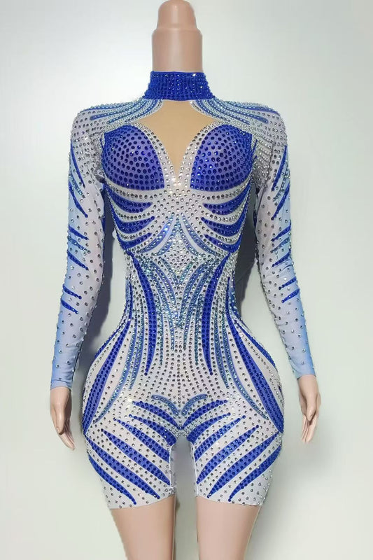 Rulan Luxury Rhinestone Mesh Jumpsuit Shorts Tight and Sexy Singer Models Nightclub Bar Party Performance...