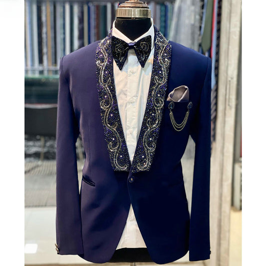Realza tu vestuario formal con nuestro Traje de Novio con Perlas y Abalorios en Color...
