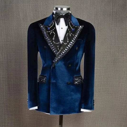 Luxury Prom Blazer Beaded Double Breasted Velvet Smoking Beaded Wedding Suit Jacket for Men 1 Piece Prom Party Male Jacket