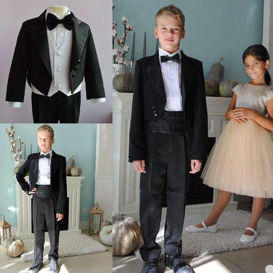 Traje formal negro de 2 piezas para niño, para boda, con solapa con muesca, para niño pequeño, para boda, graduación, esmoquin (chaqueta y pantalones)