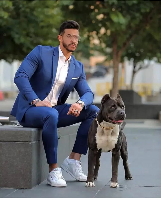 Esmoquin de boda azul para hombre, traje ajustado, informal, personalizado, para negocios, formal, para padrinos de boda, 2 piezas, chaqueta y pantalón