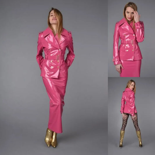 Blazer de cuero rosa para mujer, traje de vestir ajustado para madre de la novia, fiesta de graduación, invitada de boda, 2 piezas