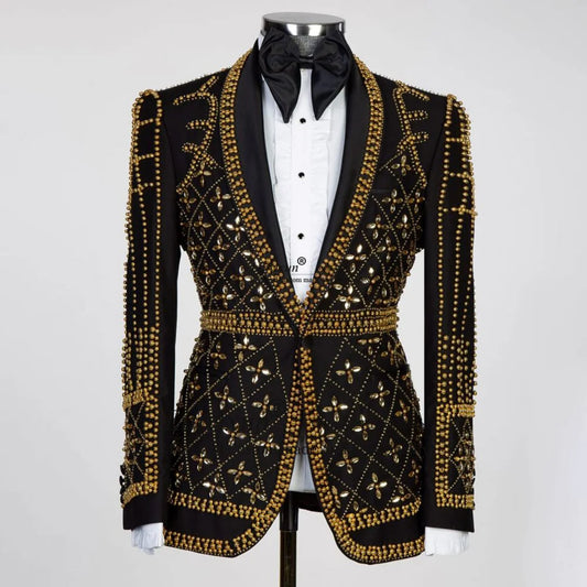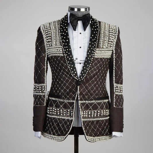 Trajes de hombre de lujo con cuentas de cristal, esmoquin de novio de corte entallado, conjuntos de 2 piezas, blazers de graduación para novio