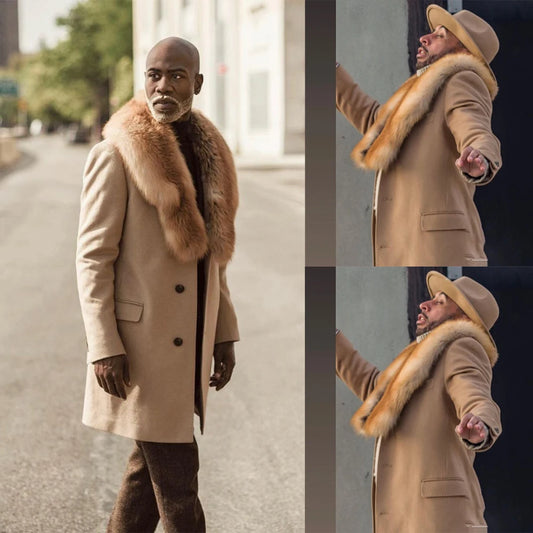 Abrigo grueso y cálido de piel de invierno para hombre, ropa de abrigo, esmoquin de boda, traje, chaqueta, disfraz de cantante de discoteca, una pieza
