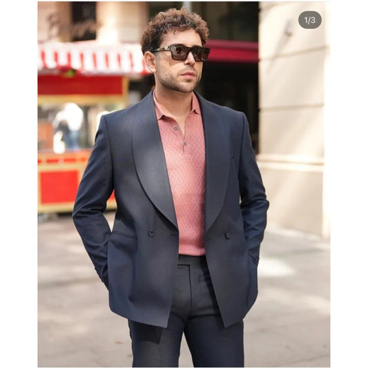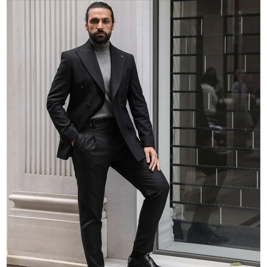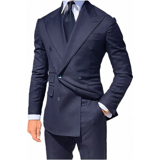 Trajes formales de negocios de doble botonadura para hombre, esmoquin de boda, corte entallado, blazer de graduación, 2 piezas, chaqueta y pantalón