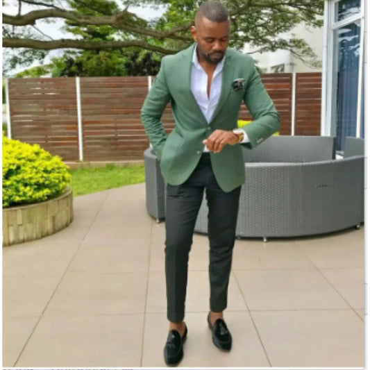 Trajes casuales verdes para hombre, de un solo pecho, con solapa con muesca, para novio, boda, esmoquin, corte entallado, para graduación, blazer, personalizado, 2 piezas