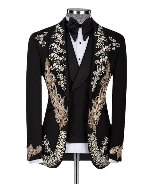Trajes de novio de lujo para hombre, corte entallado, con apliques de cristal, esmoquin de boda a medida, 3 piezas, blazer, chaleco, vestido formal de fiesta de graduación para hombre