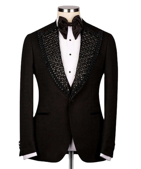 Esmoquin de boda de lujo negro formal para novio, traje de hombre ajustado con cristales y cuentas, blazer, chaleco y pantalón, traje de fiesta de graduación a medida