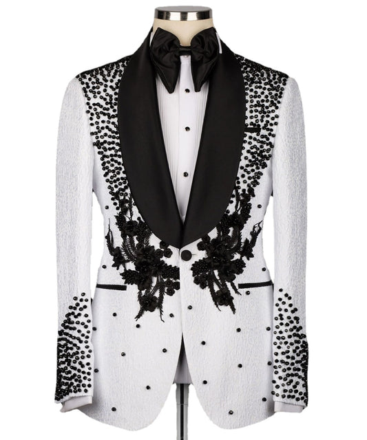 Esmoquin de boda de lujo blanco, traje formal para novio, 3 piezas, corte entallado, apliques de cristales, traje a medida para fiesta de graduación