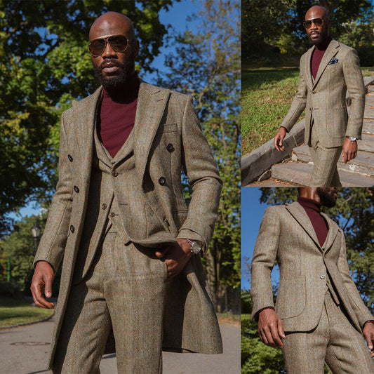 Trajes de negocios para hombre, esmoquin ajustado, chaqueta, abrigo, 4 piezas, a medida, blazer, chaleco, abrigo, pantalones, novio, boda, graduación, formal, a medida.