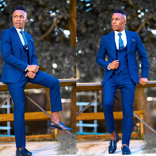 Trajes de negocios azul oscuro para hombre, corte entallado, 3 piezas, chaqueta de un solo pecho, chaleco, pantalones, boda, formal, casual, graduación, a medida