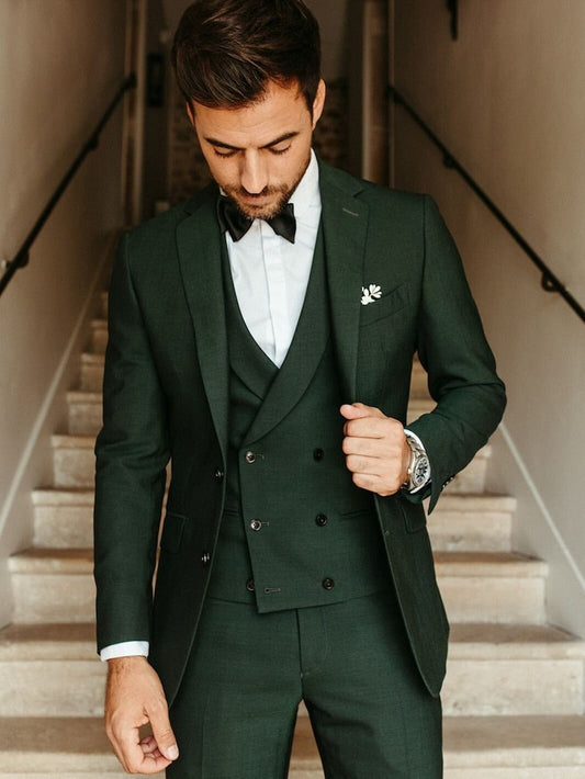 Traje de hombre, traje de boda verde oscuro, traje de novio, traje de 3 piezas, traje de dos botones, traje de fiesta para hombre, traje de cena