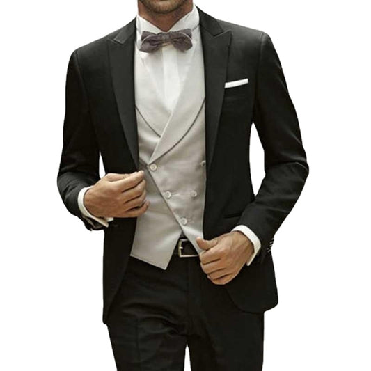 Trajes de hombre negros con solapa de pico, trajes de boda para hombre, trajes de novio ajustados, traje de baile, traje de graduación, chaqueta blazer de 3 piezas