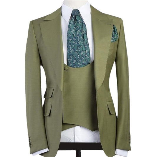 Traje de 3 piezas para hombre, con solapa de pico verde y un botón, para novio, boda, entallado, blazer