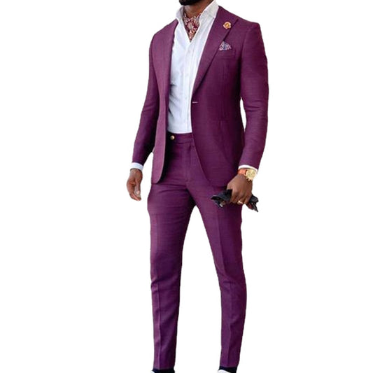 Trajes de hombre, esmoquin de solapa de pico, trajes de boda para novio, conjunto de chaqueta y pantalón negro y morado, 2 piezas, traje formal de negocios clásico.