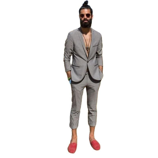 Trajes grises para hombre, corte entallado, informales, de verano, para boda, novio, esmoquin de 2 piezas (chaqueta + pantalón), blazer para el novio y el padrino.