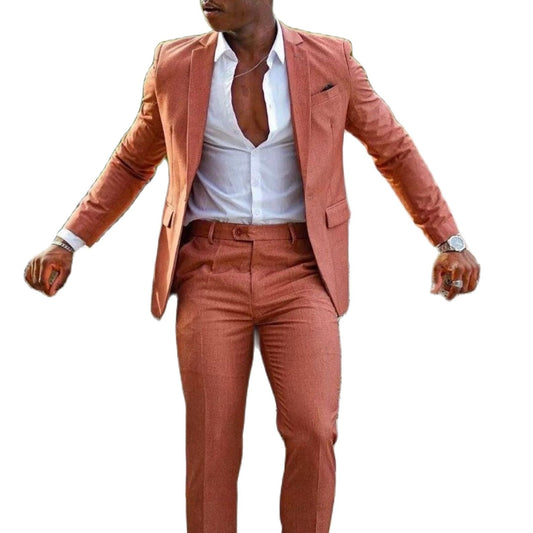 Trajes de hombre de corte entallado, cruzados, 2 piezas con cinturón, para novios, boda, esmoquin,...