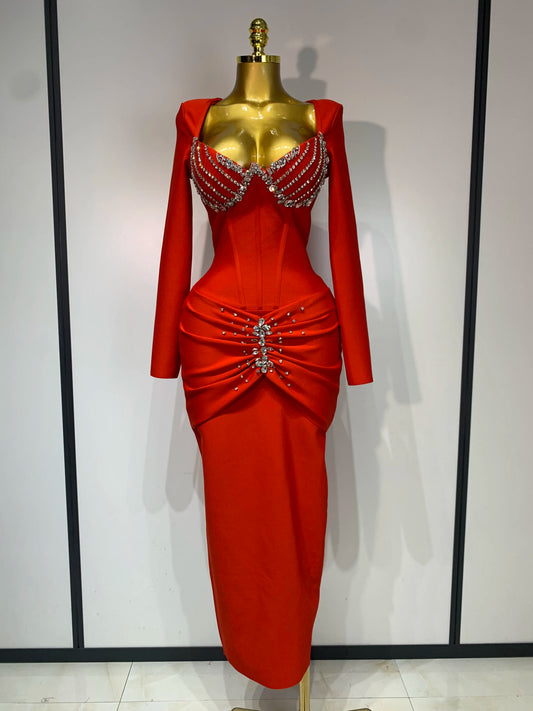 Women Sexy Luxury Sparkly Diamond Bandage Long Sleeve Bodycon Dress Celebrity Elegant Evening Club Pary Birthday Dresses