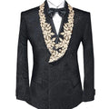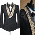 Elegante esmoquin con solapa chal y apliques de encaje dorado y negro para hombre, trajes de boda y graduación personalizados.
