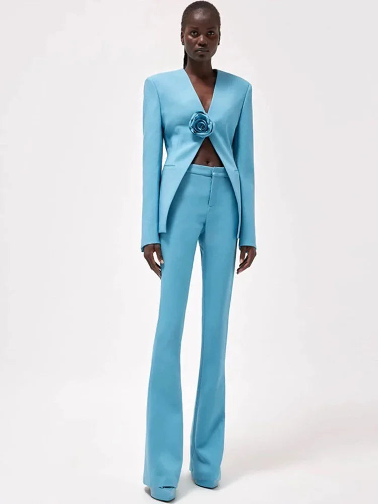 Step into the spotlight with this new fashionable two-piece suit set, featuring a stunning 3D flower print on both the jacket and trousers. Inspired by European and American celebrity style, this elegant ensemble brings together bold design and sophisticated tailoring for a truly standout look. Perfect for special occasions, events, or making a chic statement in your everyday wardrobe, this suit set combines contemporary flair with timeless elegance.