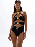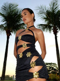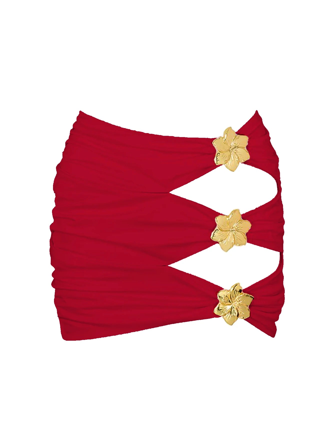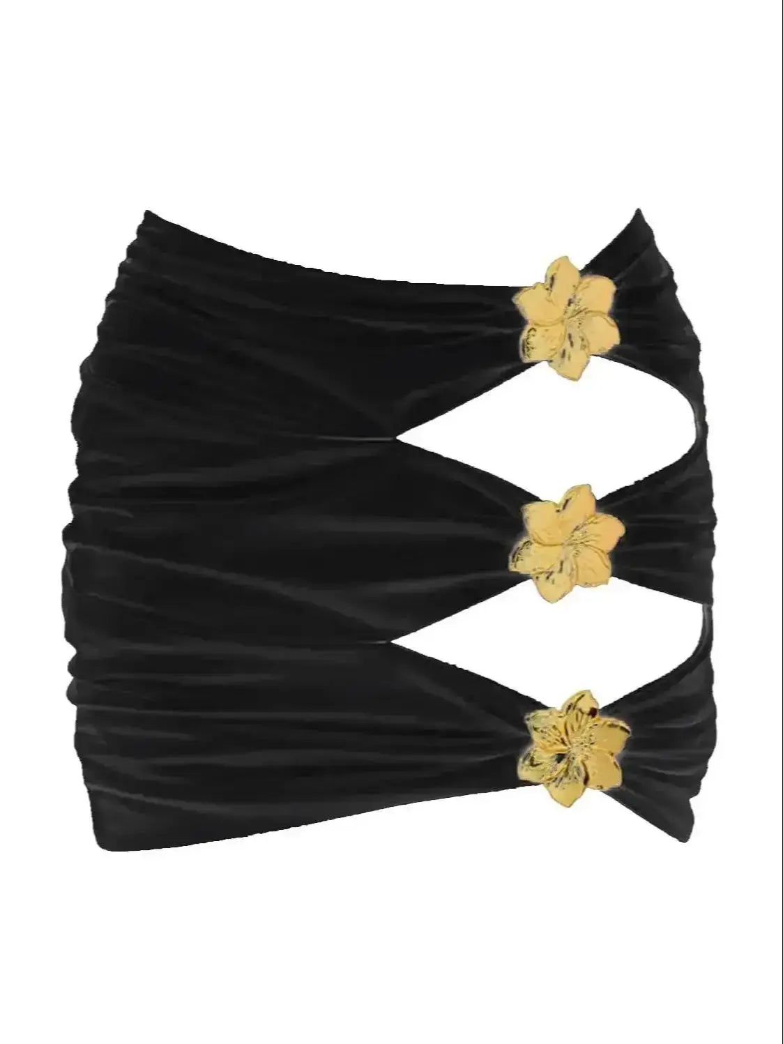 Traje de baño de una pieza con falda y estampado de flores para mujer, bañador sexy con recortes, traje de baño para playa