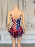 Nuevo mono con borlas y brillantes diamantes de imitación para mujer, traje de baile sexy para actuación, leotardo para cantante y bailarina, ropa de escenario para equipo de espectáculo