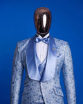 Elegante traje de esmoquin azul claro de 3 piezas para hombre, blazer, chaleco y pantalón de jacquard de algodón a medida, perfecto para bodas y ocasiones especiales.