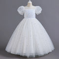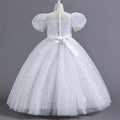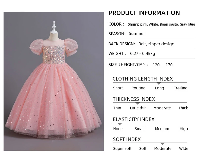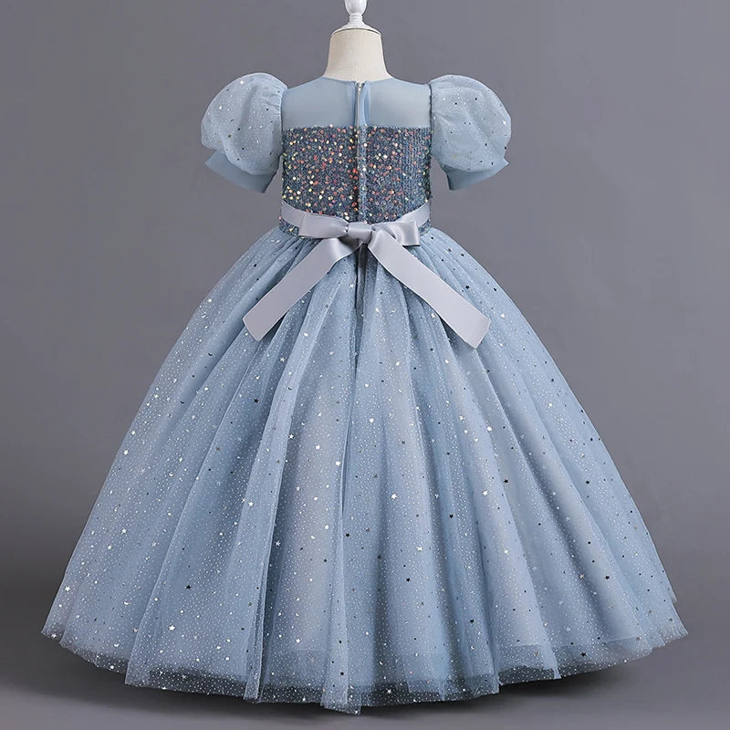 Viste a tu princesita con este encantador vestido infantil, perfecto para niñas de las flores en bodas, eventos de verano y ocasiones especiales. Este vestido presenta un diseño de princesa con adornos de lentejuelas, mangas abullonadas y una falda larga de malla. Las lentejuelas le dan un toque de brillo y glamour, mientras que las mangas abullonadas le dan un aspecto caprichoso y divertido. La falda larga de malla le da un toque elegante y delicado, haciéndola sentir como una princesa de cuento de hadas. Deja que tu pequeña brille con este hermoso vestido que la hará destacar y se sentirá especial en cualquier día memorable.