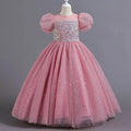 Vestido de fiesta de tul rosa brillante con mangas abullonadas y lentejuelas para niñas