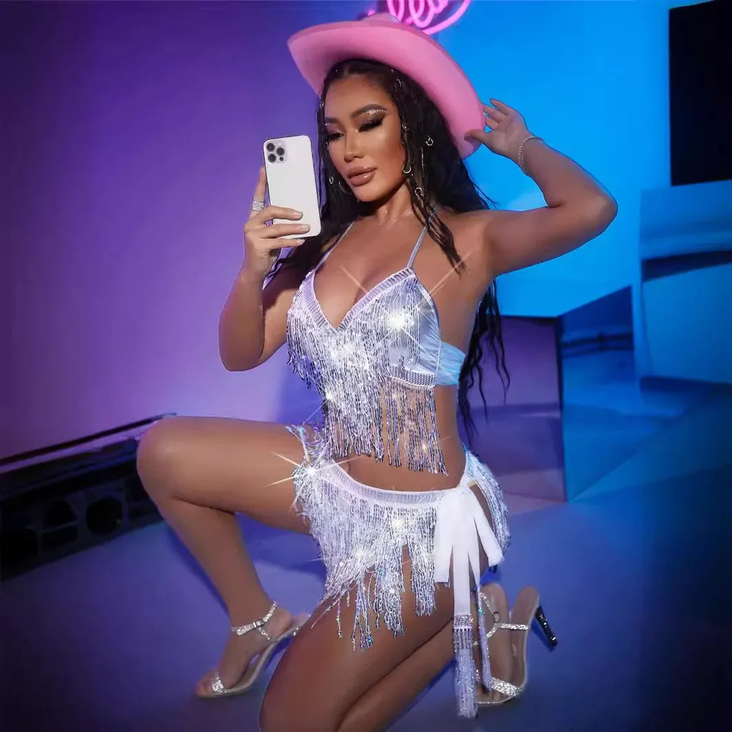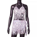 Make a bold statement with this European and American-inspired women's skirt suit, featuring dazzling rhinestone and diamond strap details. This sexy, modern set showcases unique stitching and shimmering accents, blending elegance with contemporary edge. Perfect for evenings out, clubwear, or special occasions, the striking design and sparkling embellishments ensure you stand out and shine wherever you go