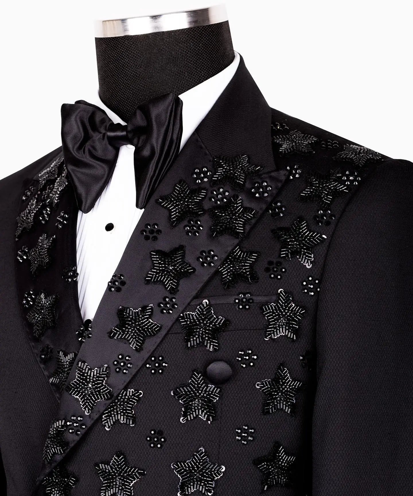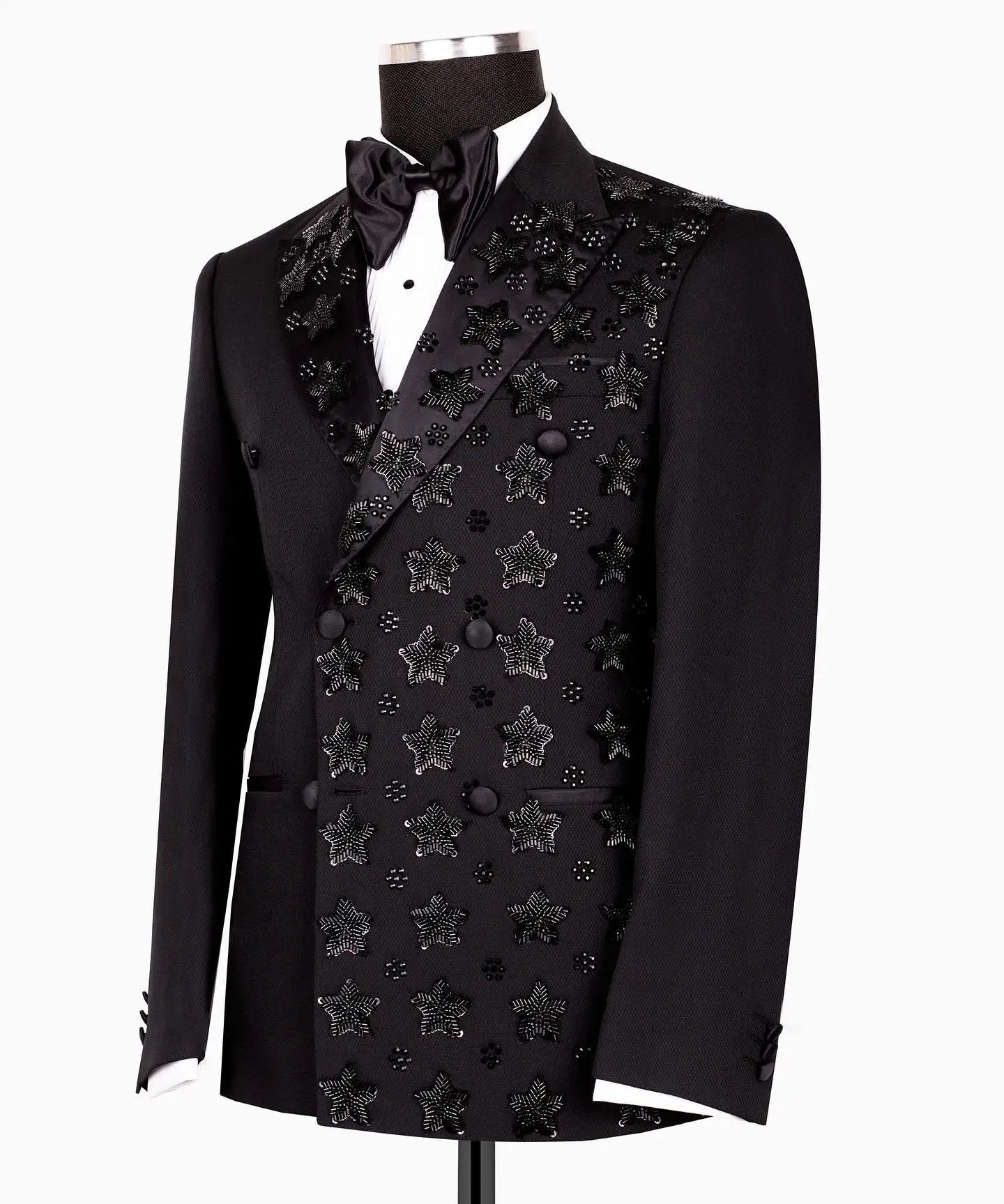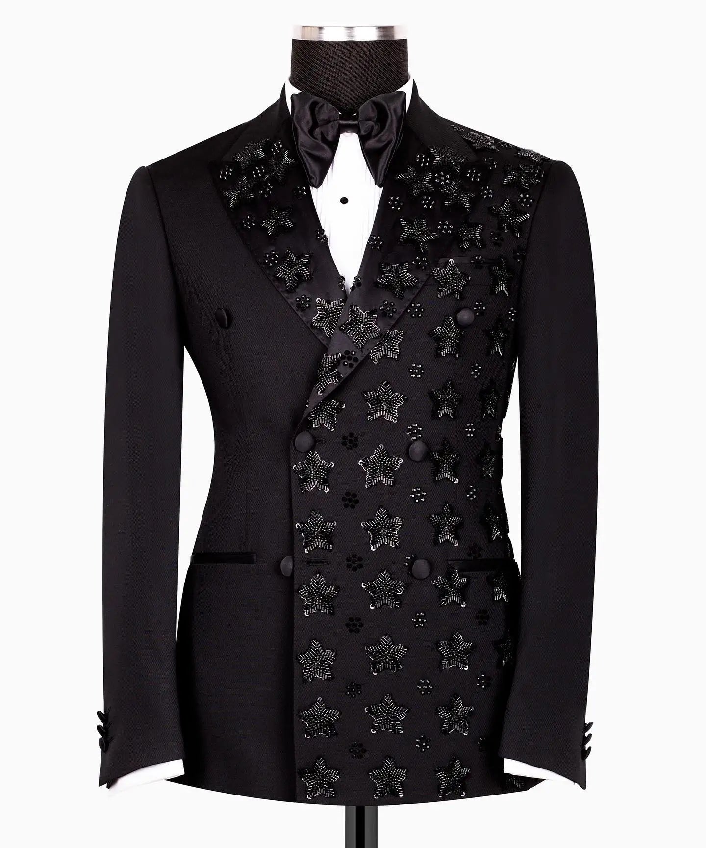 Appliques Wedding Men Coat Peaked Lapel Double Breasted Tuxedos Blazer Slim Fit Clothing Party Only Jacket Customized