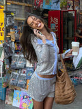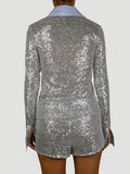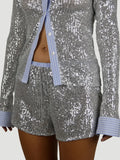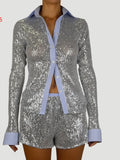 Balitops Long Sleeved Shirt Sequined Shorts Fashion Women's Set Patchwork Slim Fit Perspective Sexy Street Female Two-piece Set