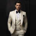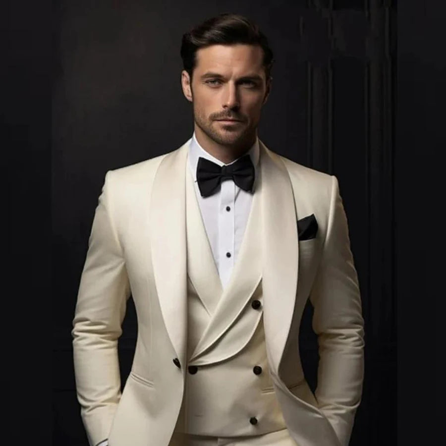 Elegante conjunto de traje beige de 2 piezas para hombre, chaqueta y pantalón de esmoquin de boda a medida para eventos formales.