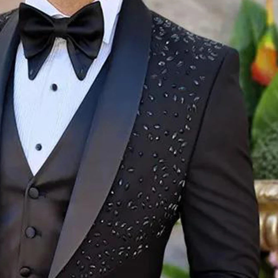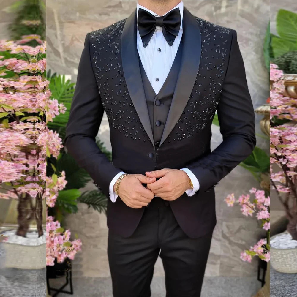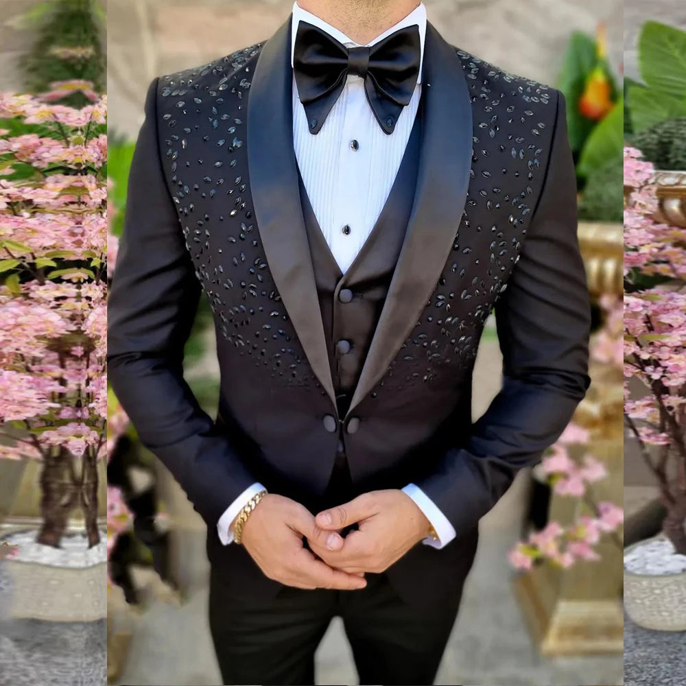 Elegante conjunto de traje de 3 piezas con chaleco para hombre, elegante chaqueta de esmoquin para bodas, fiestas y eventos formales, atuendo negro de diseñador.