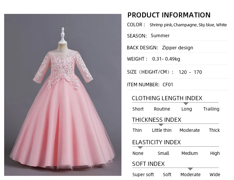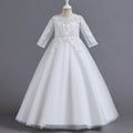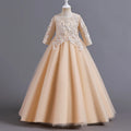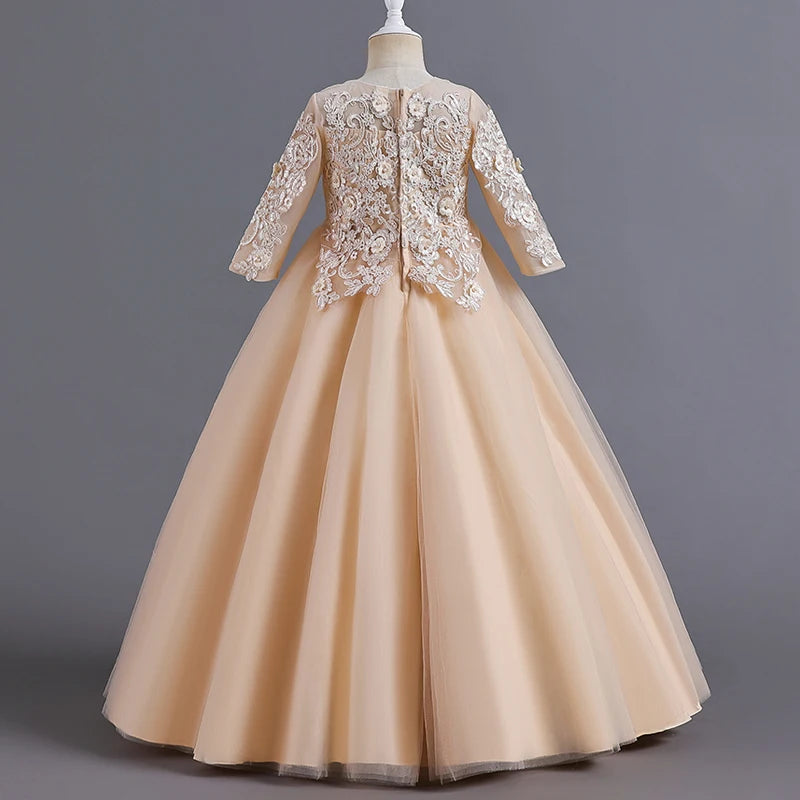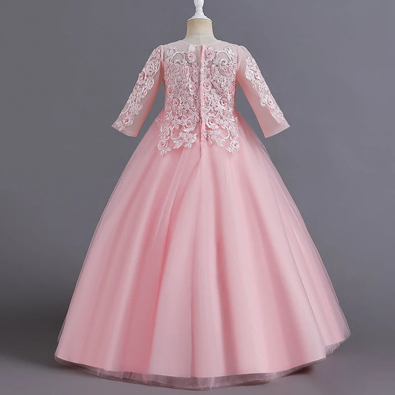 Vestido de tul con encaje y manga larga para niña, vestido de baile rosa