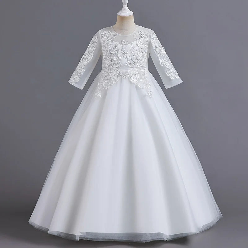 Viste a tu niña a la moda con este elegante vestido de manga larga, ajustado y sin mangas, perfecto para bodas blancas, desfiles de princesas, ceremonias de niña de las flores y banquetes. Este vestido irradia sofisticación y encanto con su corte entallado que acentúa la figura, su estilo sin mangas para un toque moderno y su diseño esponjoso que le da un aspecto caprichoso y elegante. El color blanco le da un toque de pureza y elegancia, haciéndolo ideal para ocasiones especiales. Ya sea que camine hacia el altar como niña de las flores o asista a un desfile de princesas, este vestido la hará destacar y se sentirá como una dulce princesa. Deja que tu pequeña brille con este hermoso vestido que la hará lucir y sentirse especial en cualquier día memorable.