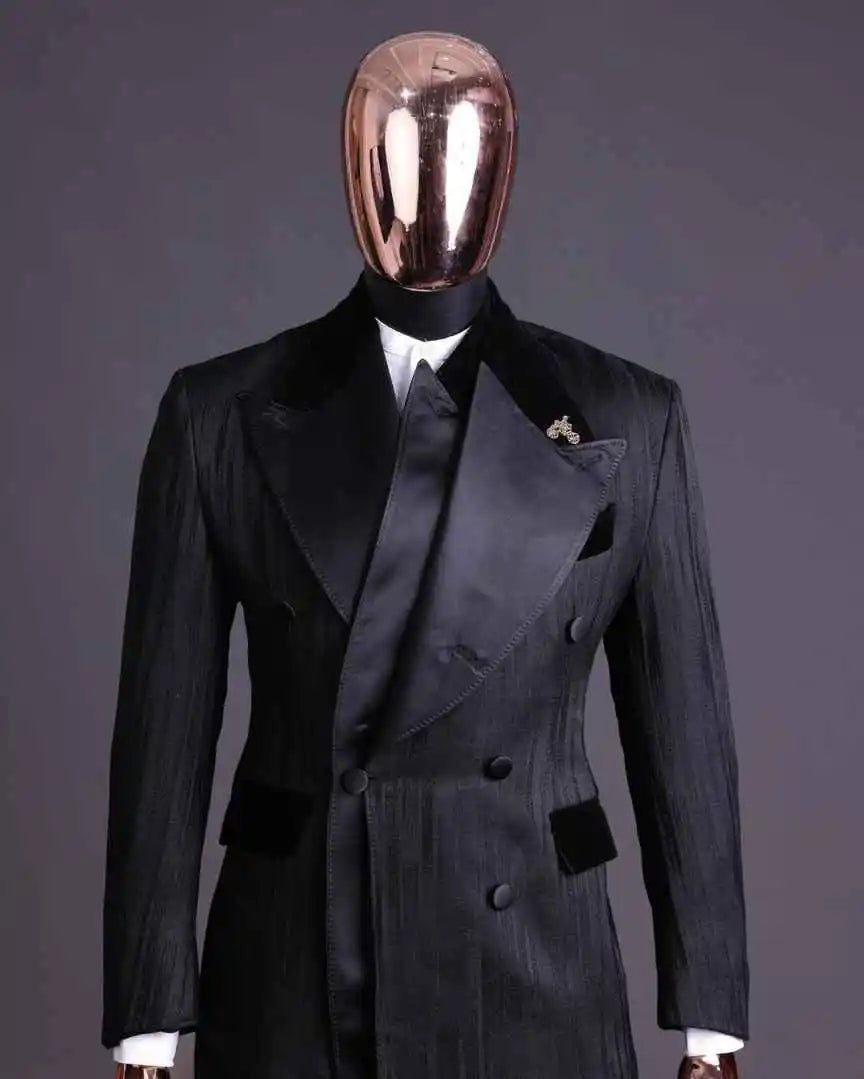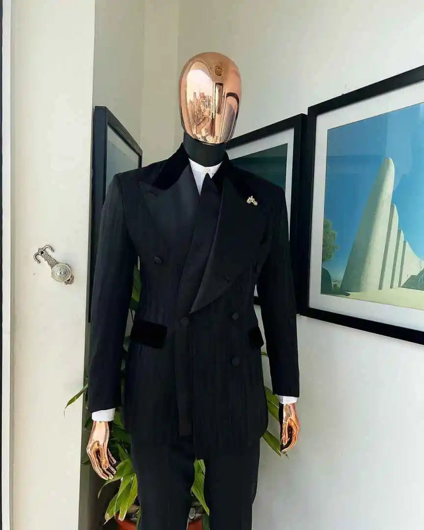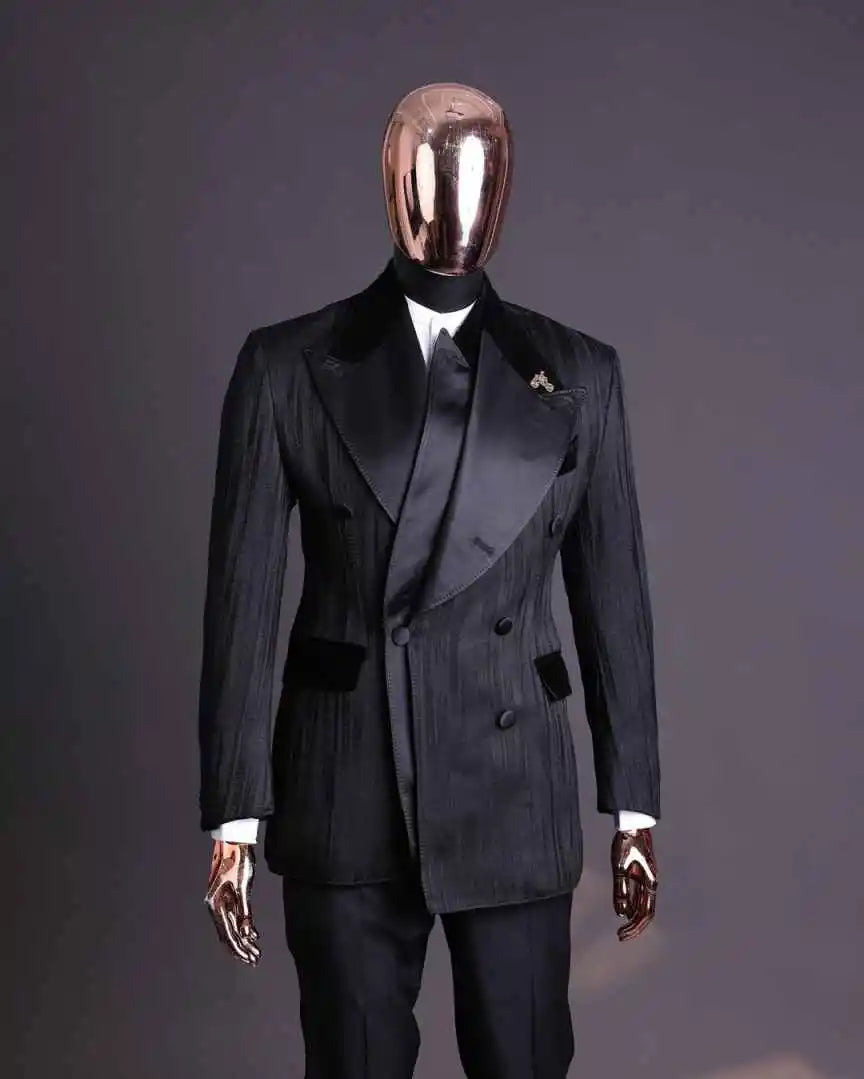 Make a commanding entrance on your wedding day or at any formal affair with this Designer 2-Piece Wedding Suit for Groom — a double-breasted tuxedo set crafted to combine modern tailoring with timeless elegance. The standout peaked lapel jacket offers a bold, refined silhouette that flatters broad shoulders and narrows the waist, while the double-breasted front adds an unmistakable air of sophistication. Designed for grooms, groomsmen, prom guests, and anyone seeking show-stopping formalwear, this two-piece ensemble pairs a structured jacket with perfectly matched trousers for a cohesive, high-end look.