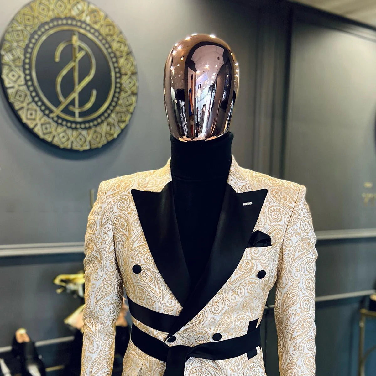 Men Wedding Blazer Floral Jacquard Coat Peaked Lapel Double Breasted for Male Prom Customize Only Jacket
