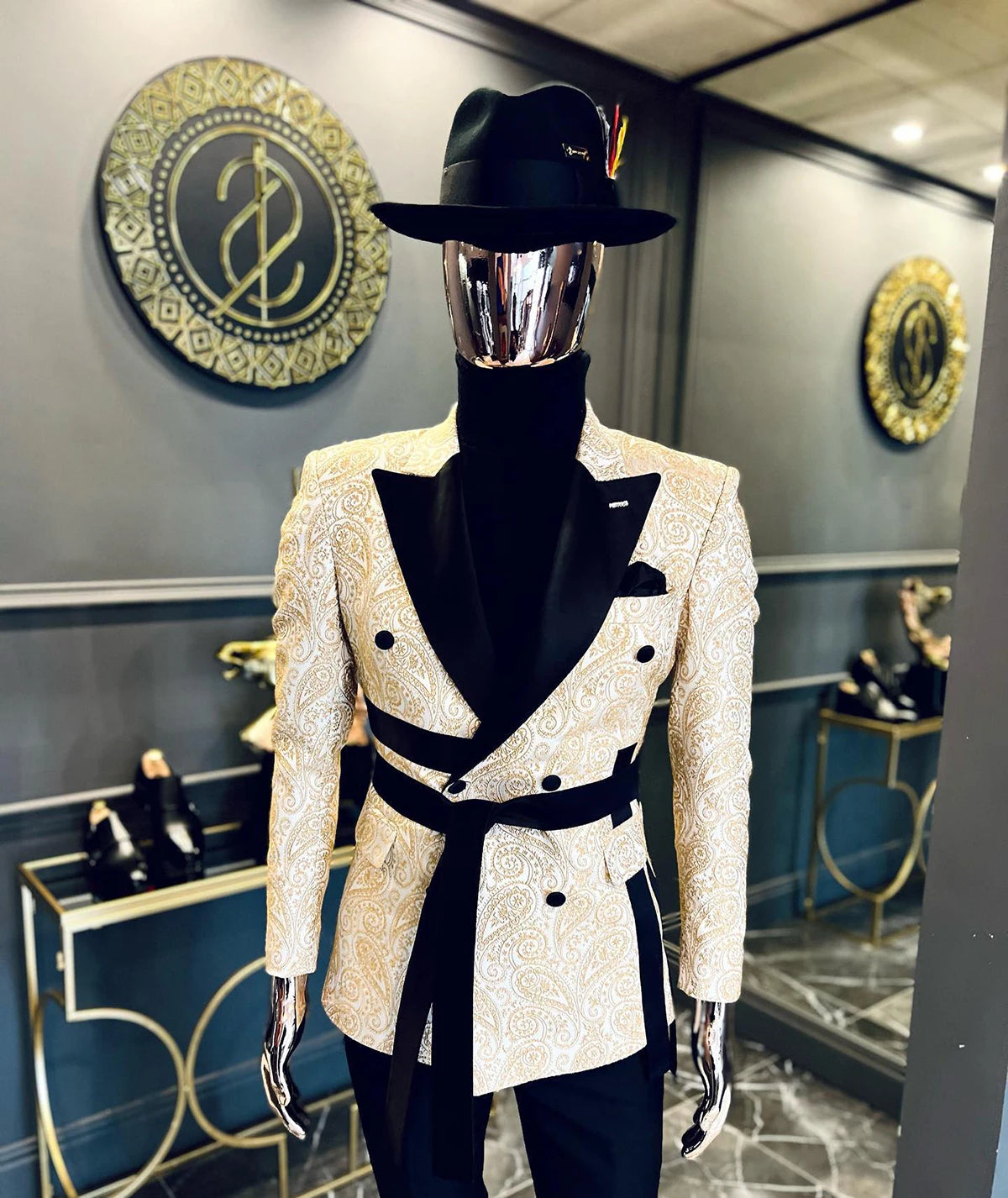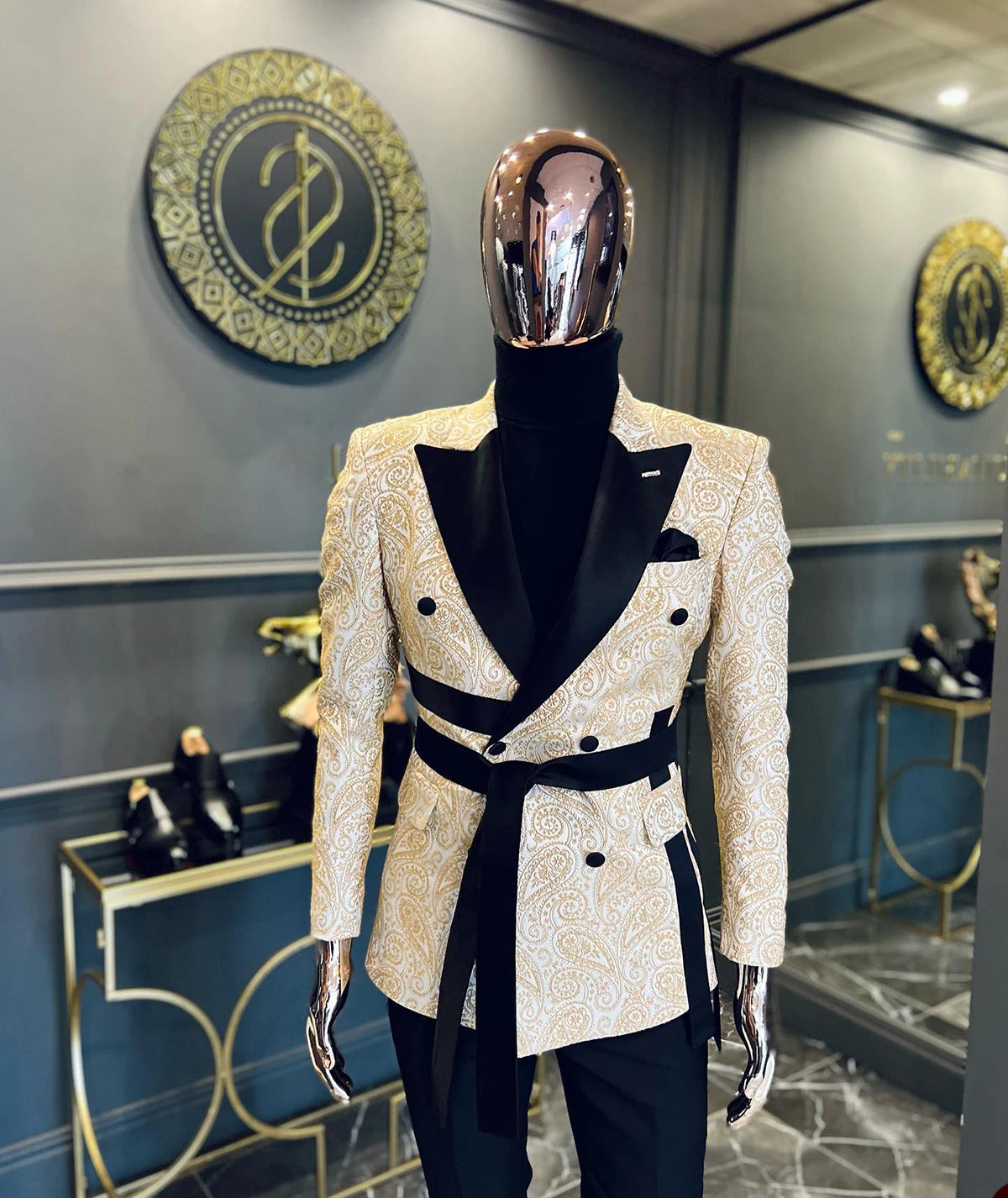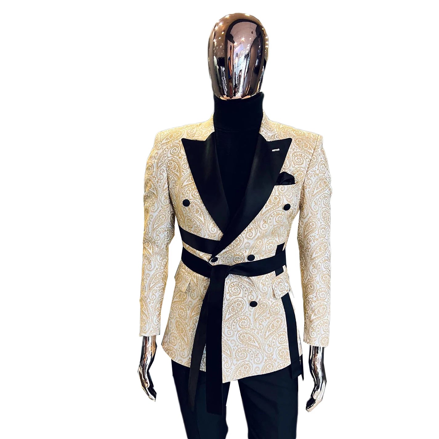 Make a memorable entrance in the Men’s Floral Jacquard Wedding Blazer: an exquisitely crafted, double-breasted coat designed as the statement piece for grooms, prom attendees, and anyone seeking elevated formalwear. This jacket-only offering focuses on luxurious fabric detail and refined tailoring—perfect when you want the coat to be the centerpiece of your outfit.
